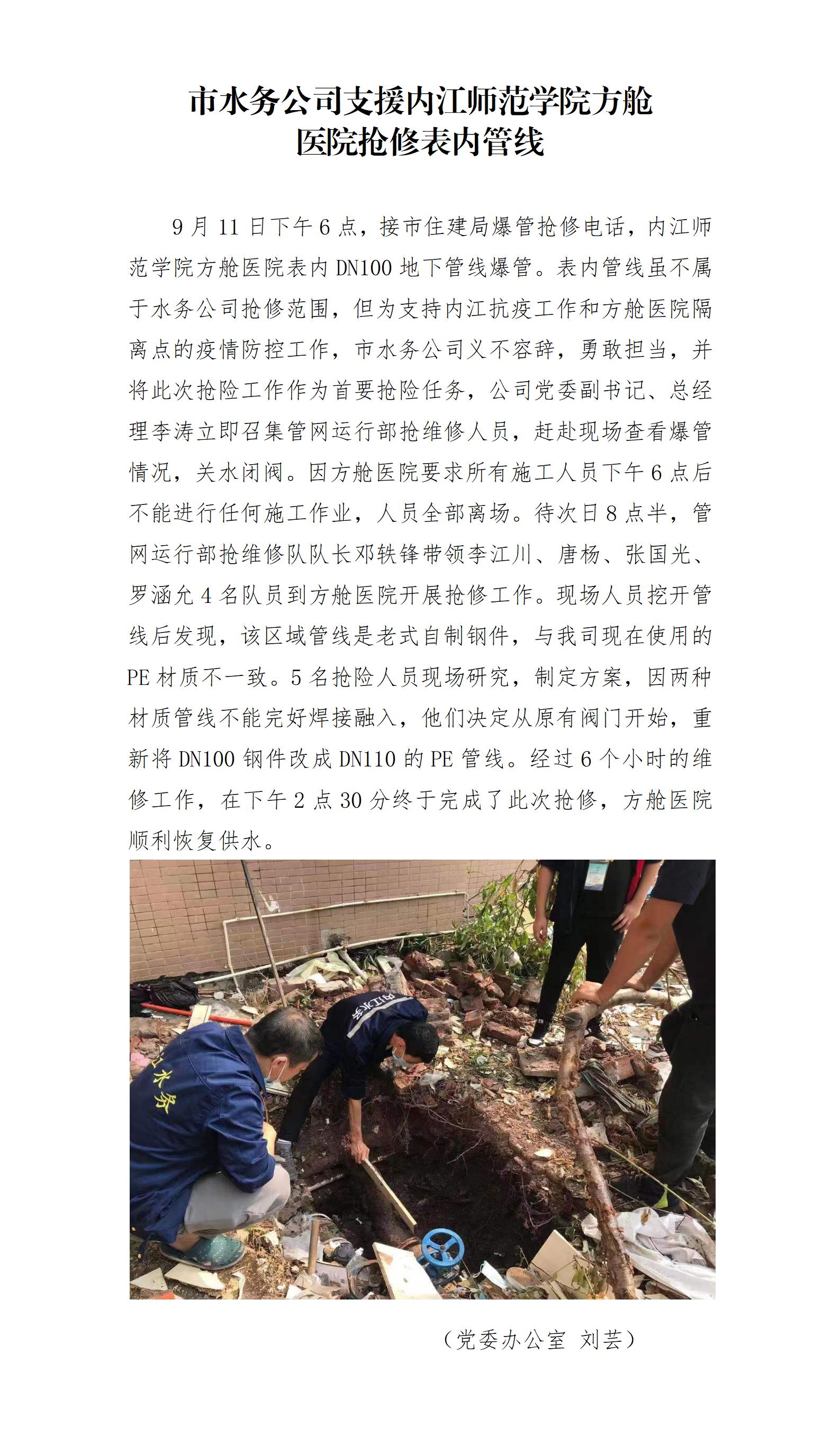 市水務公司支援內江師范學院方艙 醫(yī)院搶修表內管線