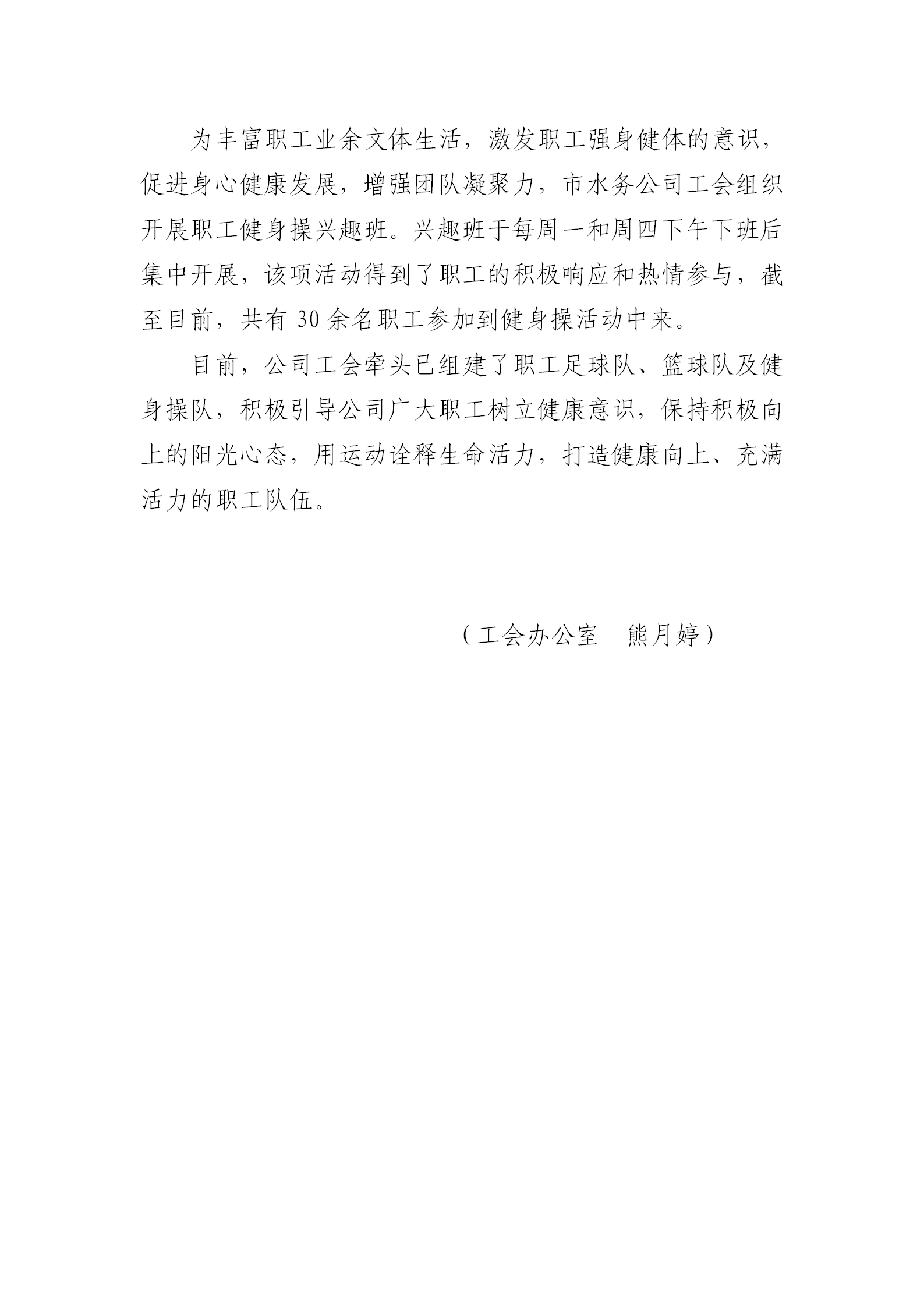 水務(wù)公司工會組織開展職工健身操興趣班