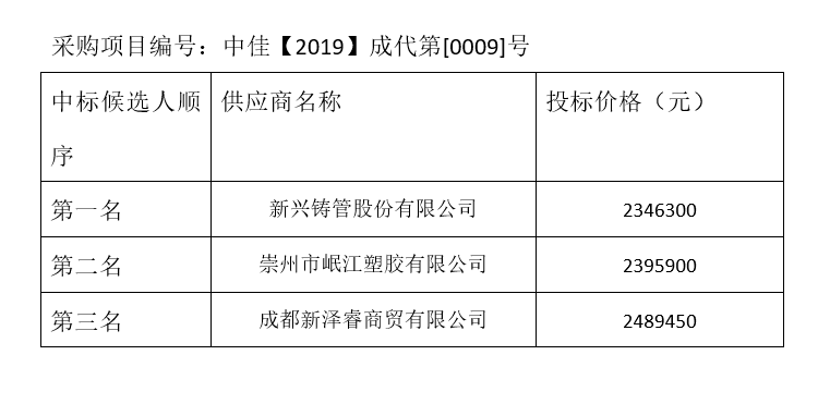 內江市水務有限責任公司球墨鑄鐵管管材及管件采購項目評標結果公示