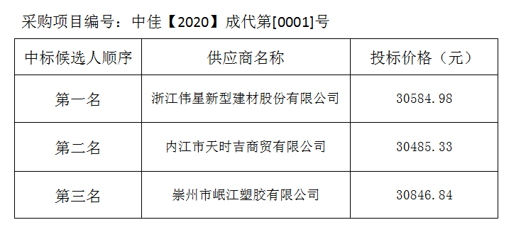內(nèi)江市水務(wù)有限責(zé)任公司PE給水管及管件采購(gòu)項(xiàng)目評(píng)標(biāo)結(jié)果公示