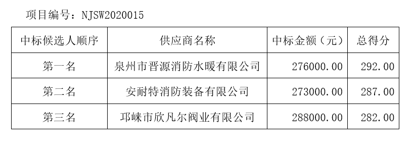 內(nèi)江市水務(wù)有限責(zé)任公司消火栓采購項目評標(biāo)結(jié)果公示