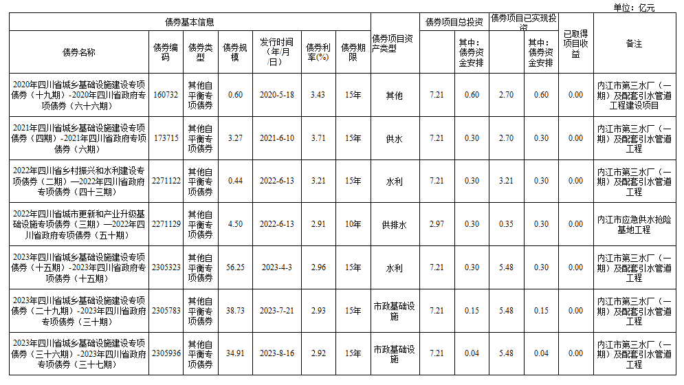 截至2023年末新增地方政府專項(xiàng)債券情況表
