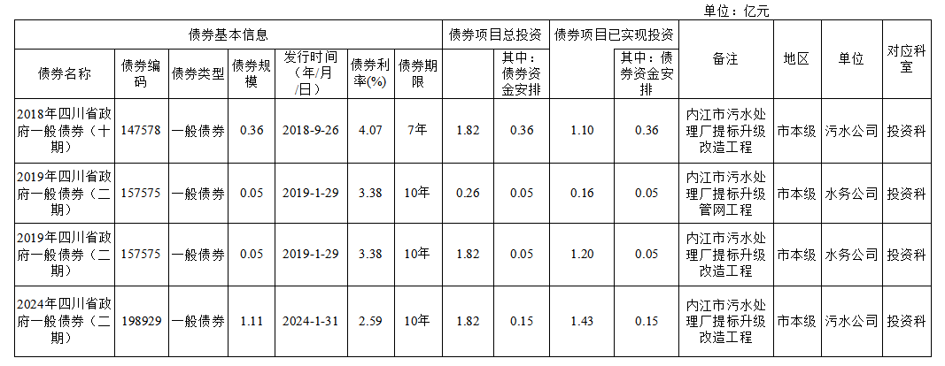 截至2024年末新增地方政府一般債券情況表