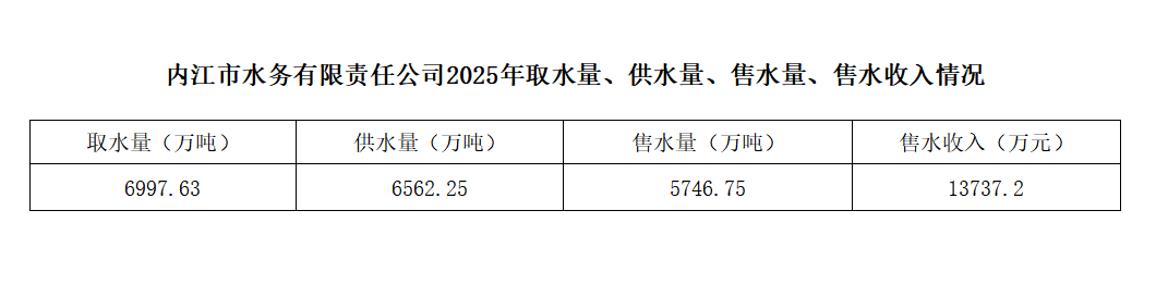 內(nèi)江市水務有限責任公司2025年取水量、供水量、售水量、售水收入情況