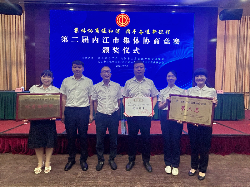 7月25日,由市總工會(huì)、市人社局、市企業(yè)家聯(lián)合會(huì)、市工商聯(lián)聯(lián)合舉辦的“集體協(xié)商促和諧 攜手奮進(jìn)新征程”第二屆內(nèi)江市集體協(xié)商競(jìng)賽圓滿落幕。市水務(wù)公司代表隊(duì)經(jīng)過(guò)初賽、復(fù)賽和決賽三輪比拼,在12支隊(duì)伍的激烈角逐中脫穎而出,最終榮獲第二名。